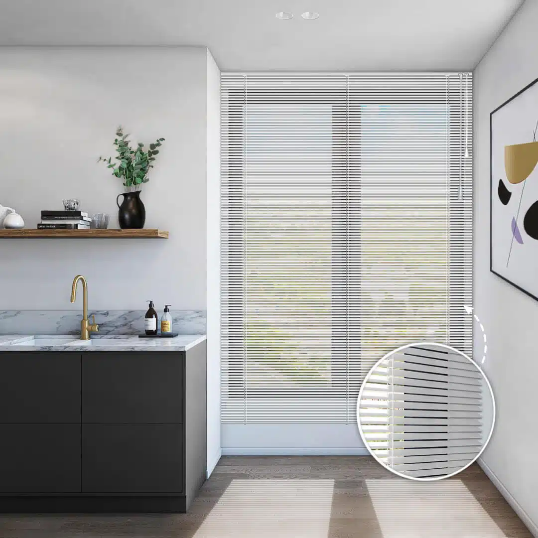 תריס ונציאני עשוי מאלומיניום ברוחב שלב של 16 מ"מ.